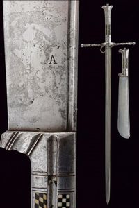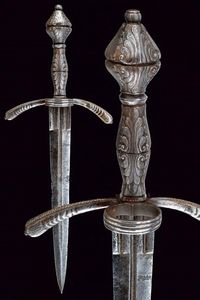 Sassonia, lunghezza 35.5 cm. 1590 circa Lama dritta a due fili, costolata in mezzeria; tallone di forma rettangolare [..]