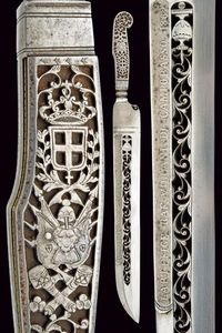 Campobasso, lunghezza 50 cm. 1862 Lama dritta a un filo e breve controfilo, la parte centrale con banda traforata [..]