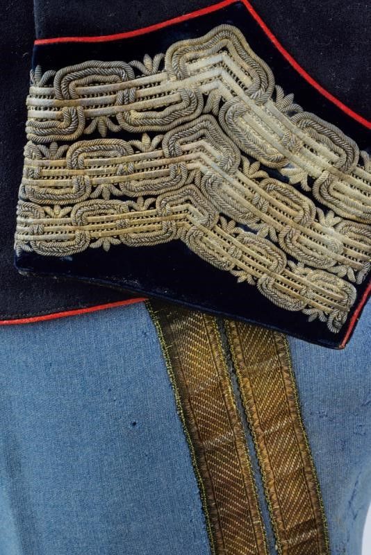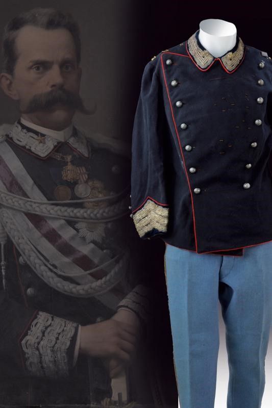 1889 Uniforme composta da giacca e pantaloni, personalmente donata dal Re al celebre pittore Edoardo Gelli in occasione della realizzazione del suo secondo ritratto del sovrano, eseguito nel 1889, in cui Umberto I indossa un'uniforme simile a quella qui presentata.