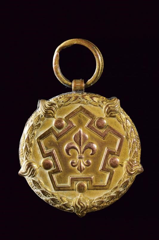 1849 Medaglia per l'assedio di Messina. In rame dorato. Al dritto giglio borbonico, al rovescio 'ASSEDIO DELLA CITTADELLA DI MESSINA 1848'.