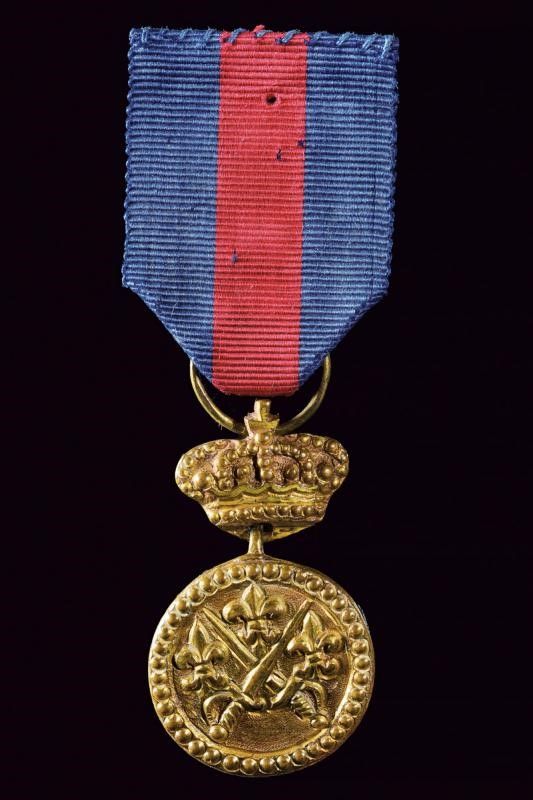 1816 Distintivo per i Militari fedeli alla dinastia. In bronzo, di forma circolare e sotto corona, con nastro.