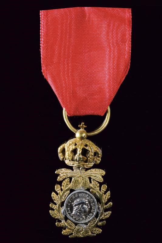 Regno delle Due Sicilie, dimensioni 1.6 x 3.2 cm. 1816 Medaglia al Merito per la Guardia di Sicurezza per i fatti del 22 Maggio 1815. Miniatura in bronzo con medaglione in argento. Con corona e fronde. Al dritto testa del re a destra e iscrizione 'FERDIN IV RE DELLE DUE S.' Al rovescio gigli borbonici specula