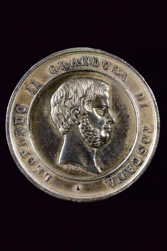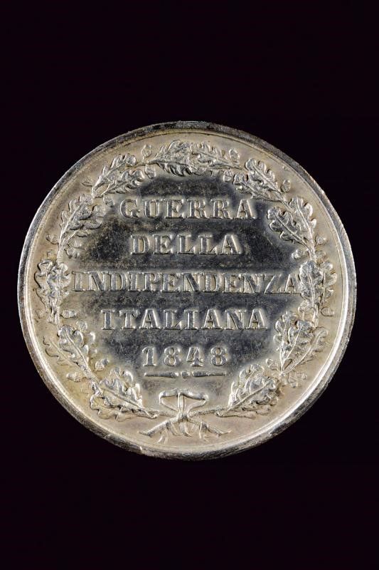 Granducato di Toscana, diametro 3.8 cm. 1848 Medaglia per i reduci dalla Guerra d'Indipendenza. In argento. Al dritto testa a destra ed iscrizione 'LEOPOLDO II GRANDUCA DI TOSCANA'. Al rovescio 'GUERRA DELLA INDIPENDENZA ITALIANA 1848', manca l'anello.