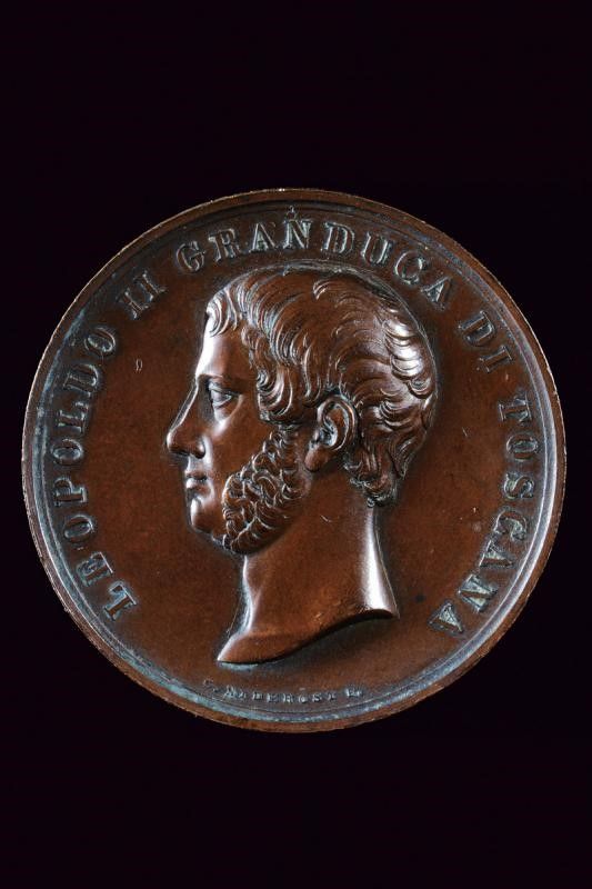 Granducato di Toscana, diametro 4.5 cm. 1854 Medaglia in bronzo, premio d'incoraggiamento all’industria toscana. Al dritto testa a sinistra ed iscrizione 'LEOPOLDO II GRANDUCA DI TOSCANA'. All'esergo 'G. NIDEROST F.'. Al rovescio 'INCORAGGIAMENTO ALL'INDUSTRIA TOSCANA' e intorno 'UN' EMULA VIRTU GLI