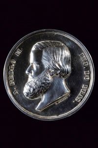 Brasile, diametro 5.1 cm. 1888 Medaglia al merito, in argento. Al dritto busto verso sinistra, al bordo 'DOM PEDRO [..]