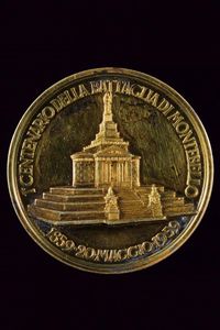 Italia, diametro 5.3 cm. 1959 In metallo dorato, al dritto monumento ed iscrizione '1° CENTENARIO DELLA BATTAGLIA [..]