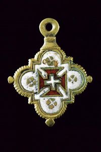 Spagna, dimensioni 2 x 2 - 1.5 x 2.2 cm. XIX Secolo Una placca in metallo argentato e smaltato, insieme con una [..]