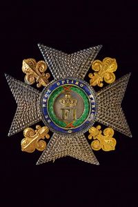 Regno delle Due Sicilie, dimensioni 8 x 8 cm. Inizio del XIX Secolo Insigne dell'ordine, in oro e smalti. Di eccellente [..]