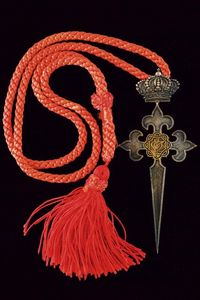 Spagna, dimensioni 5.7 x 13.3 cm. Metà del XIX Secolo Insegna dell'ordine in argento con medaglione centrale dorato, [..]