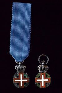 Regno di Sardegna, dimensioni 1.5 x 2.6 cm. 1815 - 1855 Croce in argento smaltata in rosso e bianco, incisa sul [..]