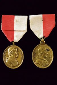 Stato Pontificio, dimensioni 4.7 x 6.1 cm. 1831 Due esemplari in bronzo dorato, privi di opus. In astuccio originale [..]