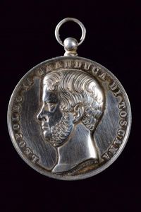 Granducato di Toscana, diametro 4.1 cm. 1844 Medaglia assegnata al capitano Giovanni Manzi; in argento. Al dritto [..]