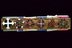 Italia, larghezza 8.5 cm. 1820-30 Le decorazioni montate su una placca dorata. Da sinistra a destra: Ordine dei [..]