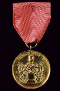 Regno delle Due Sicilie, diametro 3.7 cm. 1849 Medaglia per l'assedio di Messina. Variante in rame dorato (mancanze [..]