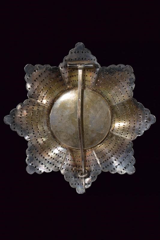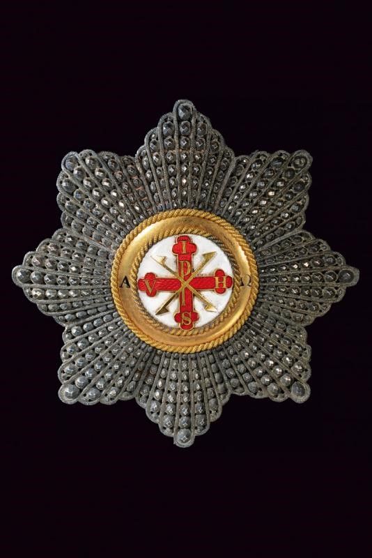 Inizio del XIX Secolo Placca da Baĺ, cavaliere di gran croce di giustizia, in argento brillantato e traforato, con oro e smalti al centro. Su spilla verticale punzonata. Bellissimo esemplare di alta qualità.