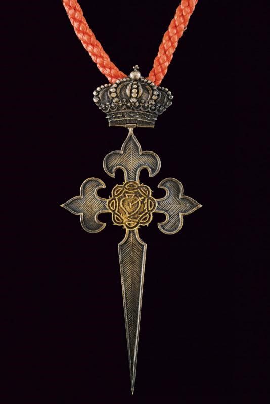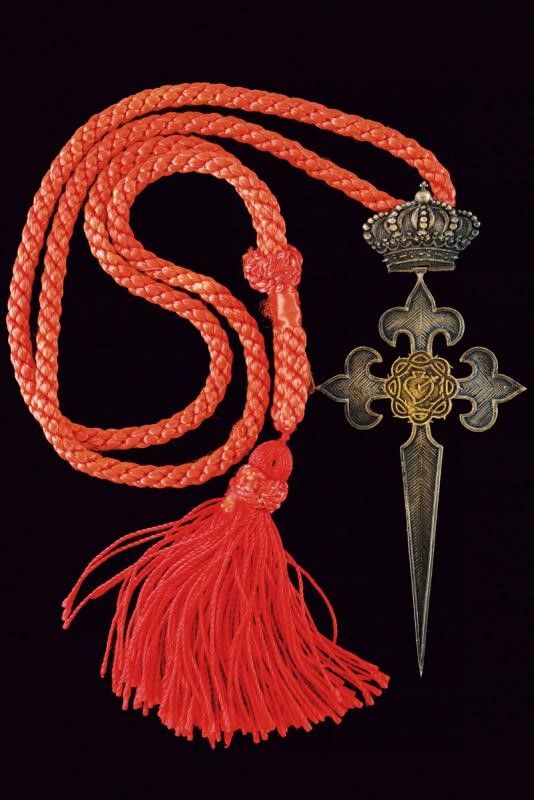 Metà del XIX Secolo Insegna dell'ordine in argento con medaglione centrale dorato, sormontato da corona con attacco snodato e dotato di lungo cordoncino rosso. Raro.