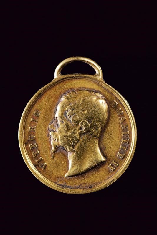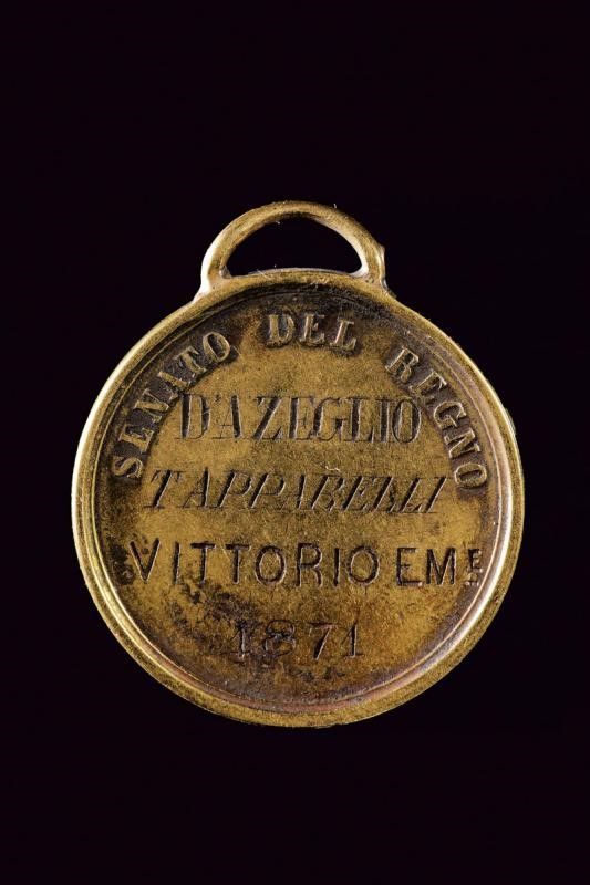 1871 Medaglia in oro conferita a Vittorio d'Azeglio. Al dritto busto del Re e 'VITTORIO EMANUELE II'. Al rovescio 'SENATO DEL REGNO / D'AZEGLIO TAPPARELLI VITTORIO EM. 1871'. 7 g.