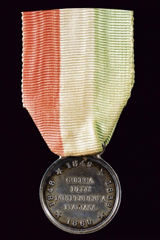 Modena, diametro 2.3 cm. 1861 Medaglia dei comuni della Provincia di Modena ai Volontari dal 1848-1860. Al dritto: al centro 'AI VOLONTARI I COMUNI', intorno 'DELLA PROVINCIA DI MODENA RICONOSCENTI'. Al rovescio: al centro 'GUERRA DELLA INDIPENDENZA ITALIANA', intorno '1848 1849 1859