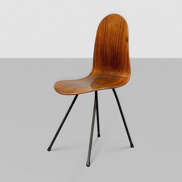 Italia, anni 50 sedia in legno e metallo verniciato, marchio della produzione, restauro