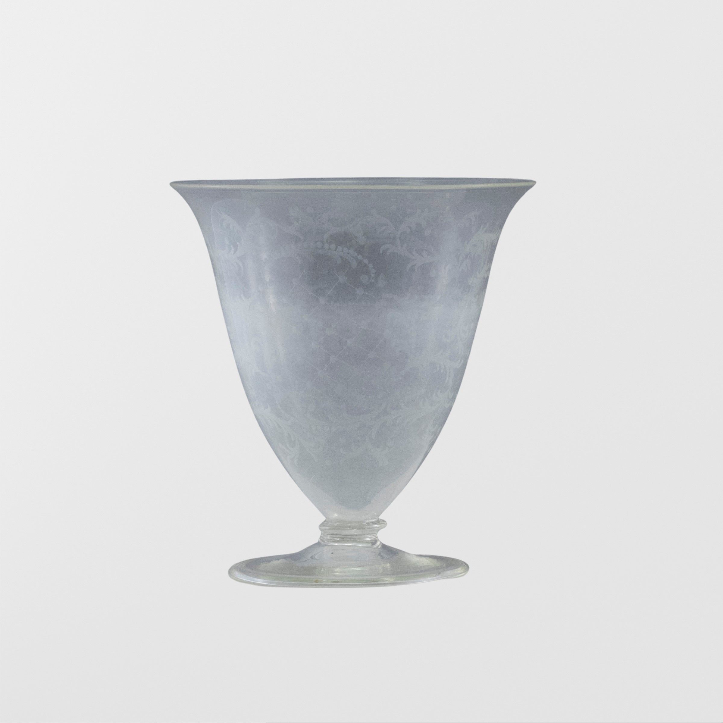 Italia, anni 30 coppa in vetro soffiato trasparente ed inciso, usure