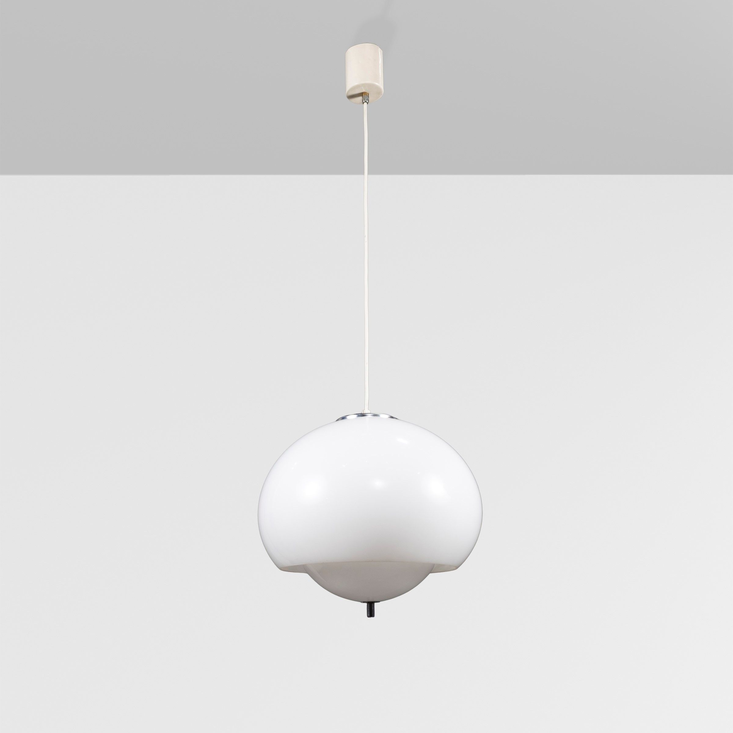 Italia, anni 70 lampada a sospensione in metallo cromato e ABS
