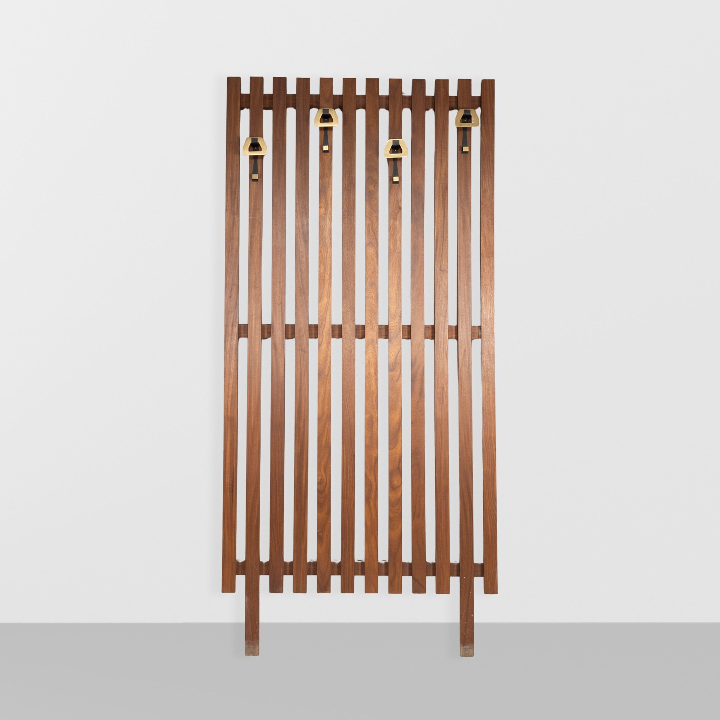 anni 60 appendiabiti in legno, metallo verniciato ed ottone, lievi usure