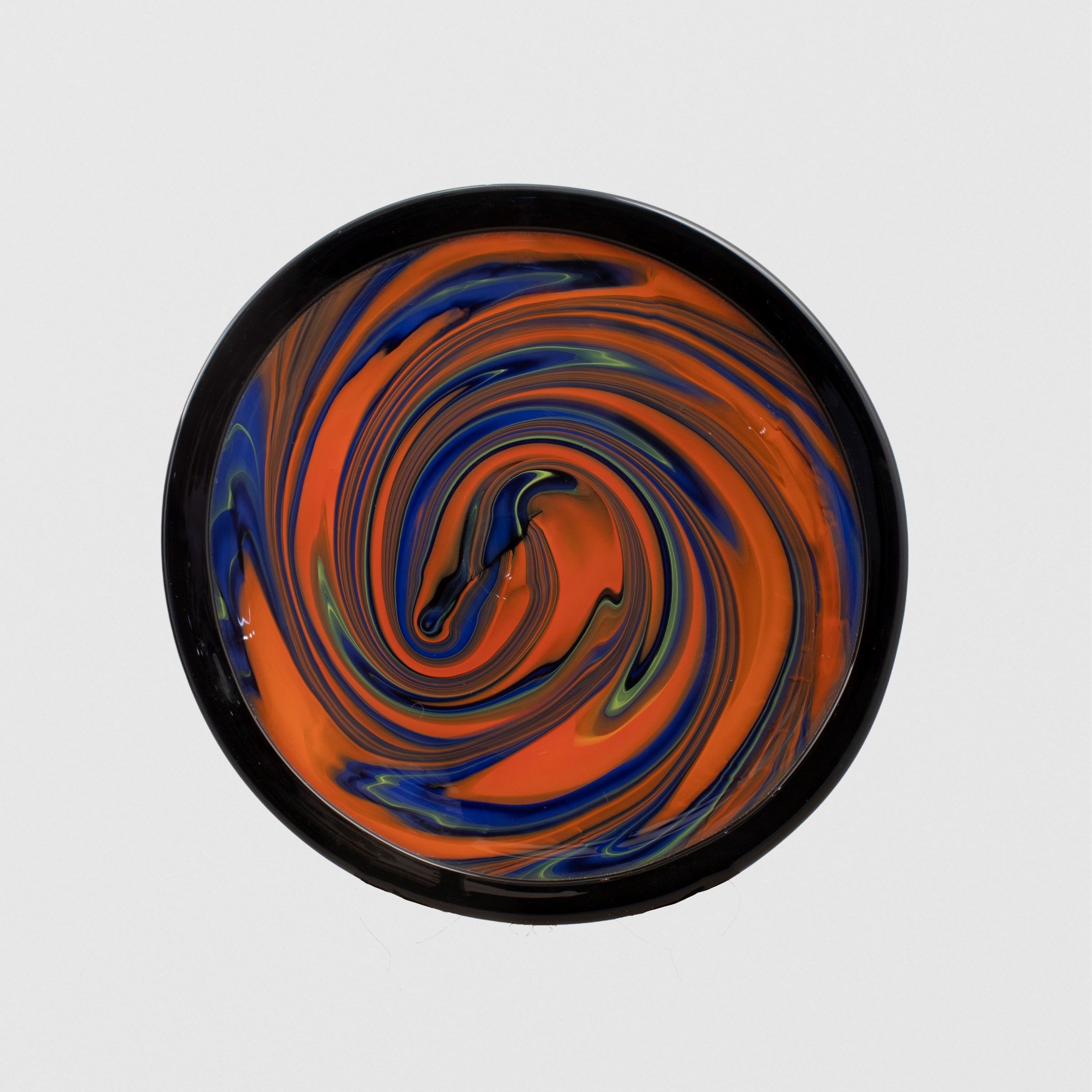 Murano, 1988-1989 grande piatto in vetro soffiato policromo, marchio della produzione