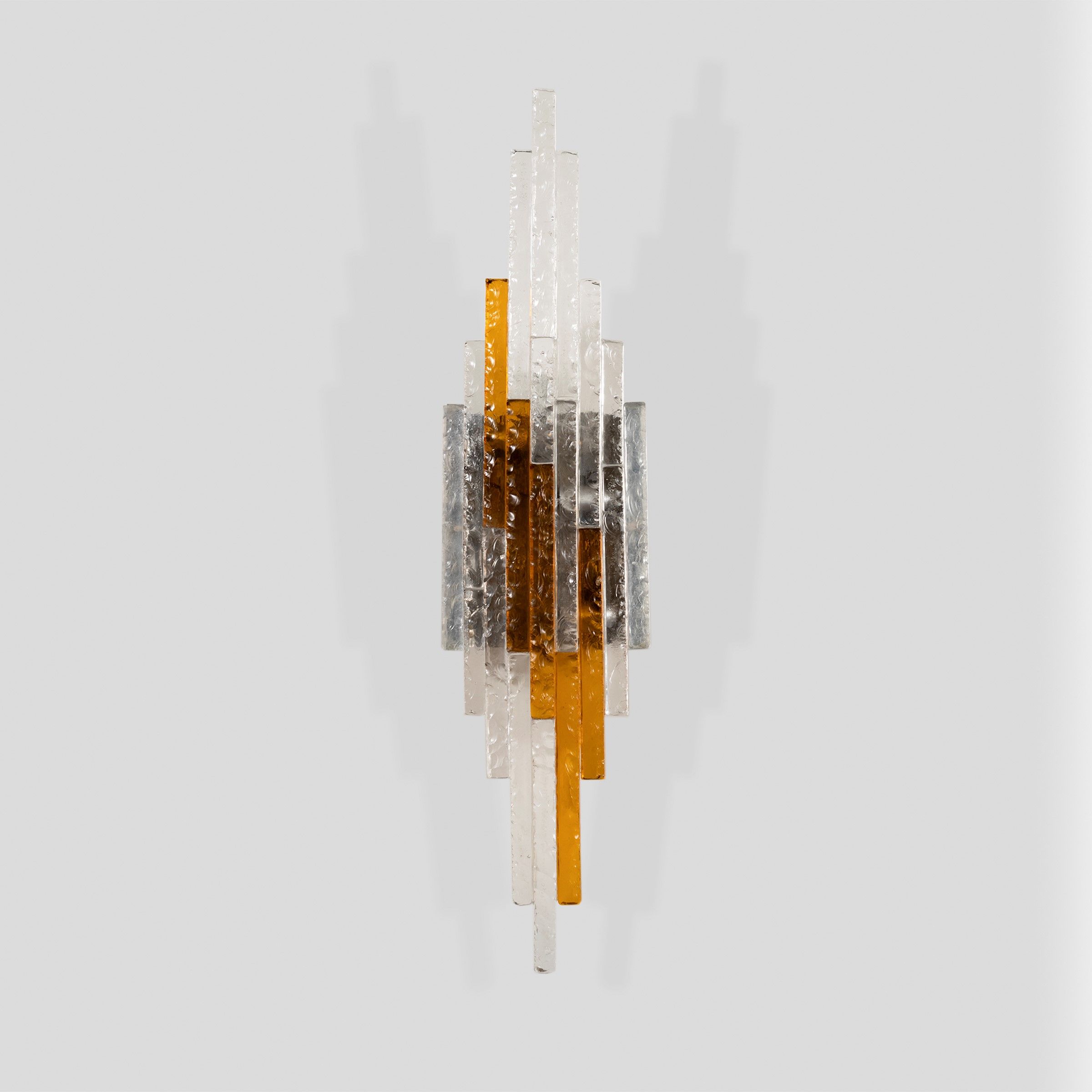 Italia, anni 50-60 lampada da parete in vetro colorato, vetro trasparente e metallo