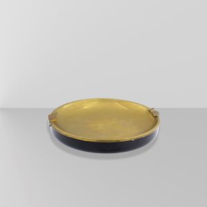 4x21 cm. Italia, anni 70 posacenere in ABS ed ottone, marchio della produzione