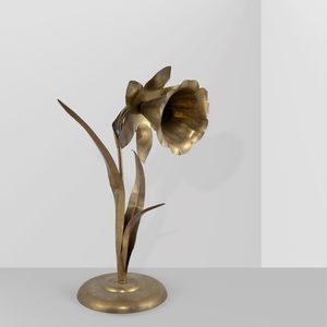 h. 64 cm. anni 60 scultura in ottone e vetro trasparente, lievi difetti