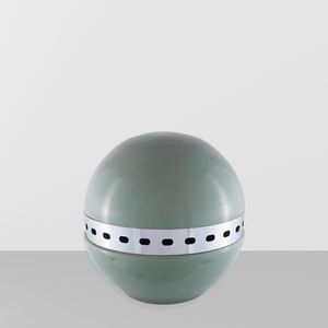 44x44 cm. anni 70 lampada da tavolo in ceramica e metallo cromato