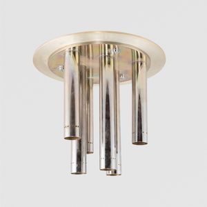 40x45 cm. Italia, anni 60 lampada da soffitto in metallo cromato, etichetta della produzione, lievi usure