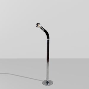 h. 130 cm. Italia, anni 70 lampada da terra orientabile in metallo cromato e gomma, etichetta della produzione