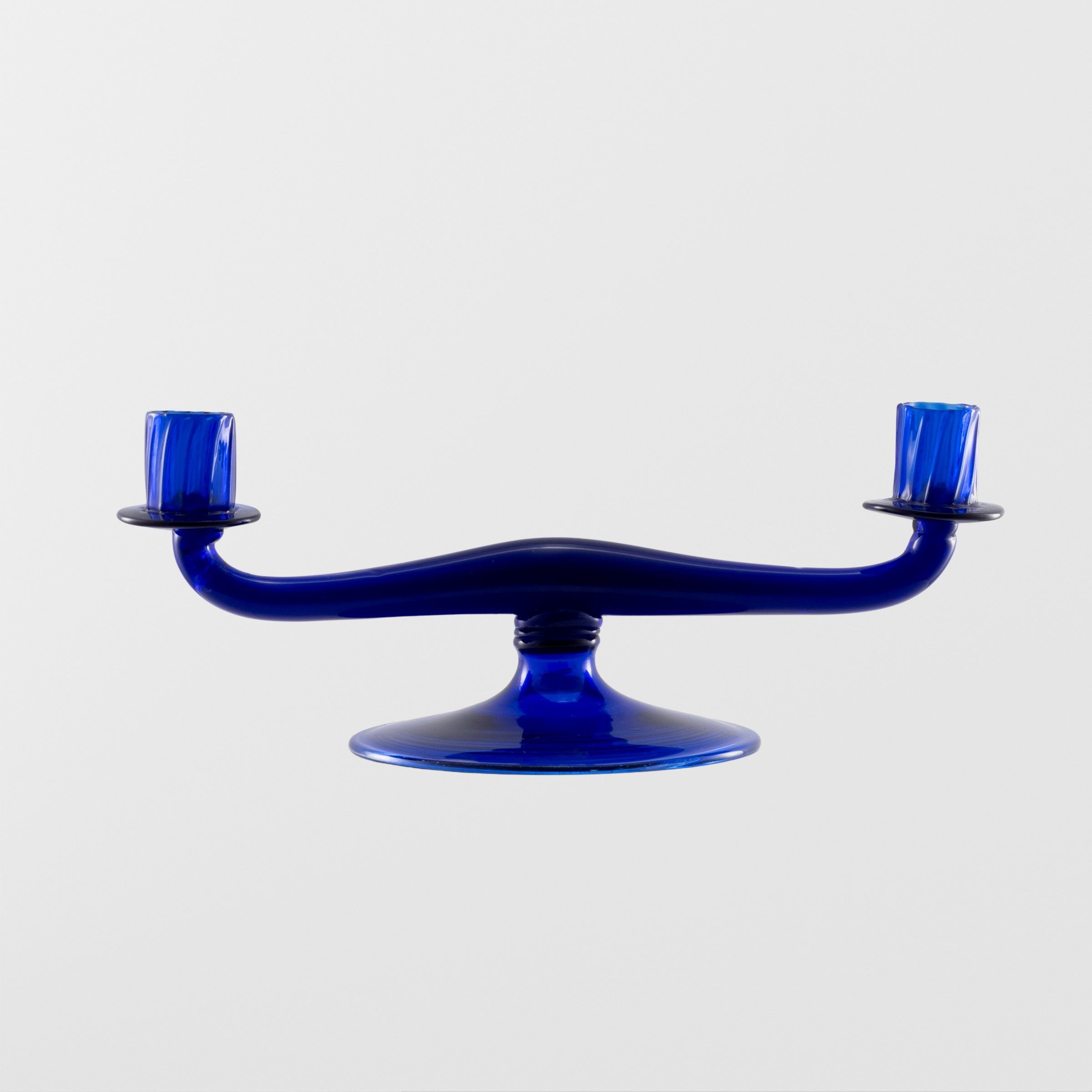 Murano, anni 20-30 candeliere in vetro soffiato colorato, firma all'acido