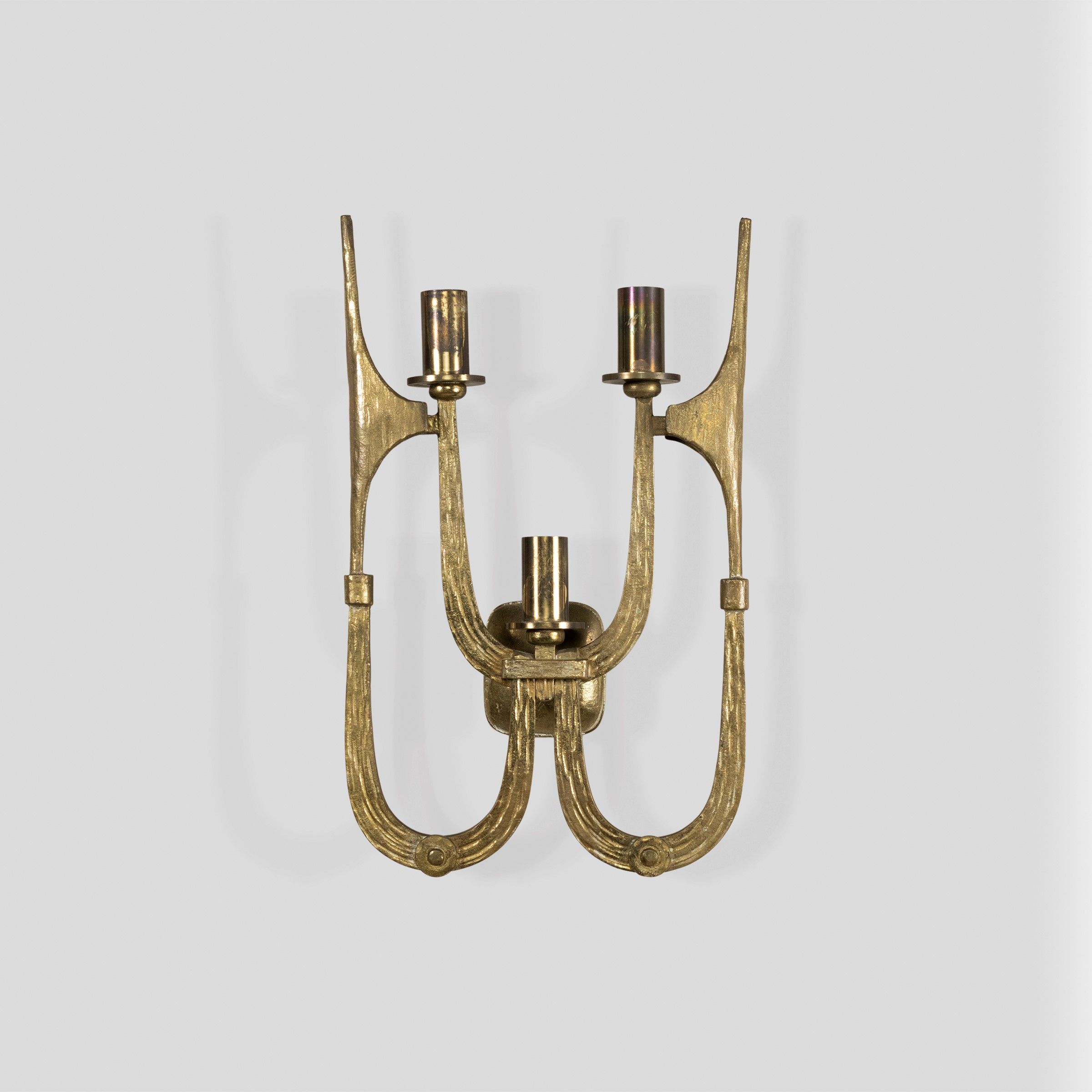 Italia, anni 70 lampada da parete in bronzo, etichetta della provenienza