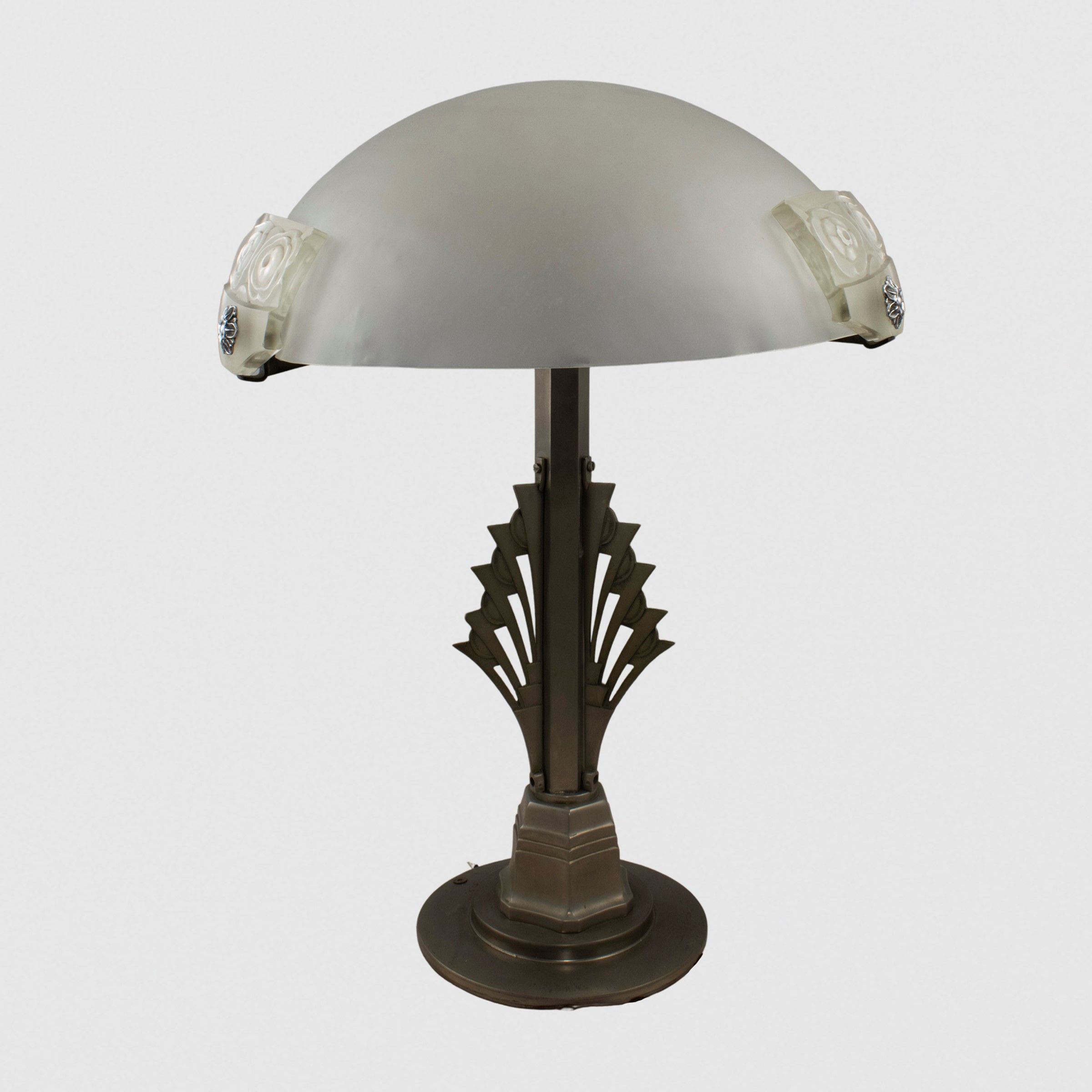 anni 30 lampada da tavolo stile Decò in metallo e vetro acetato