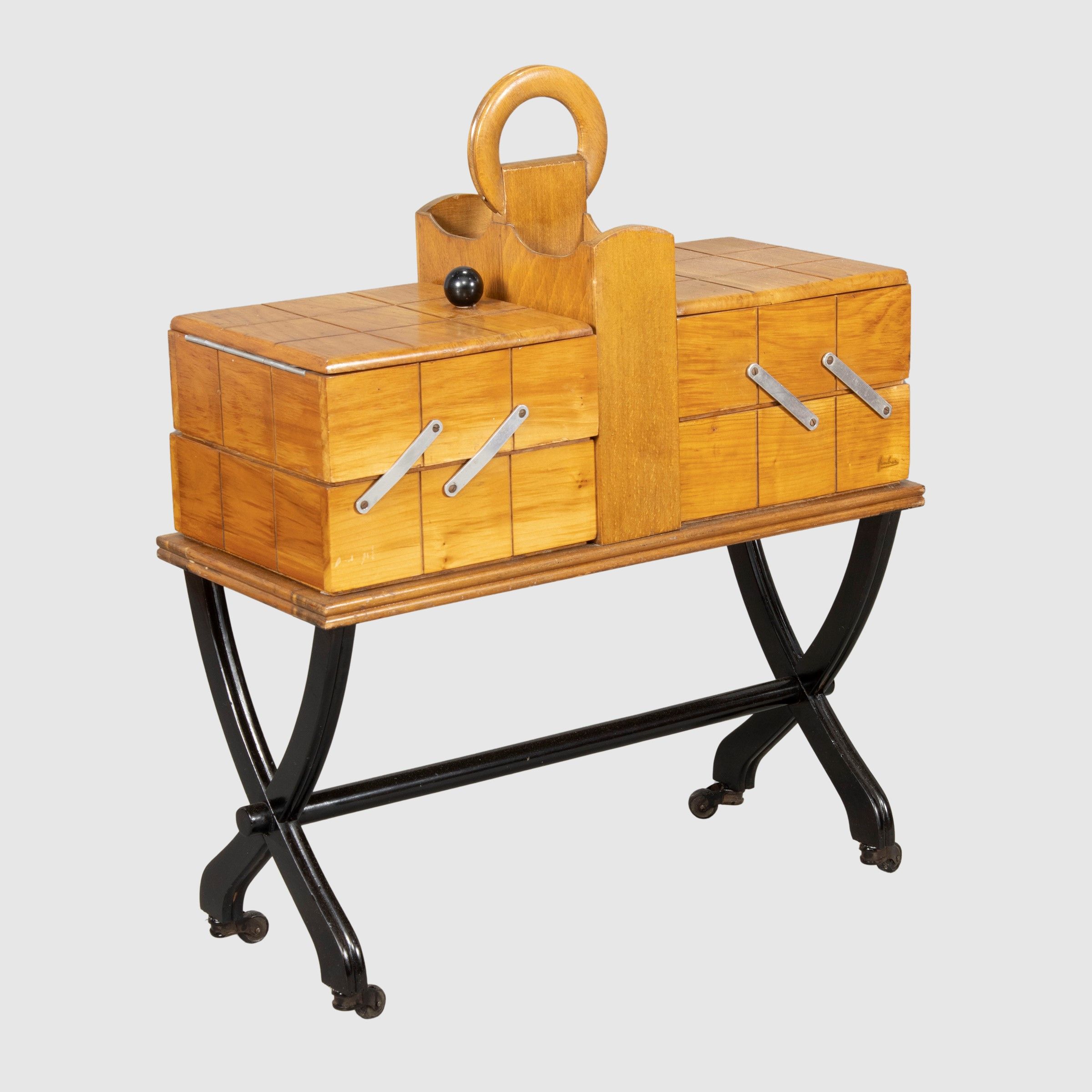 anni 50 carrello per cucito in legno, lievi usure