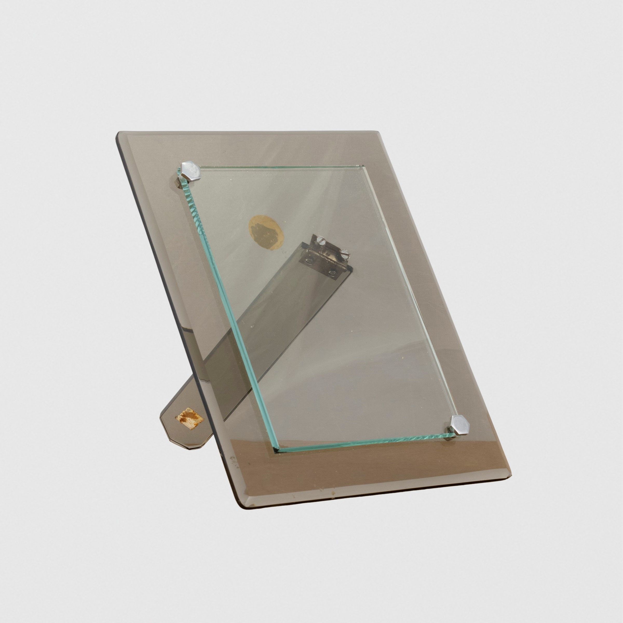 Italia, anni 70 cornice in vetro trasparente, vetro fumè e metallo, traccia di etichetta, lievi usure