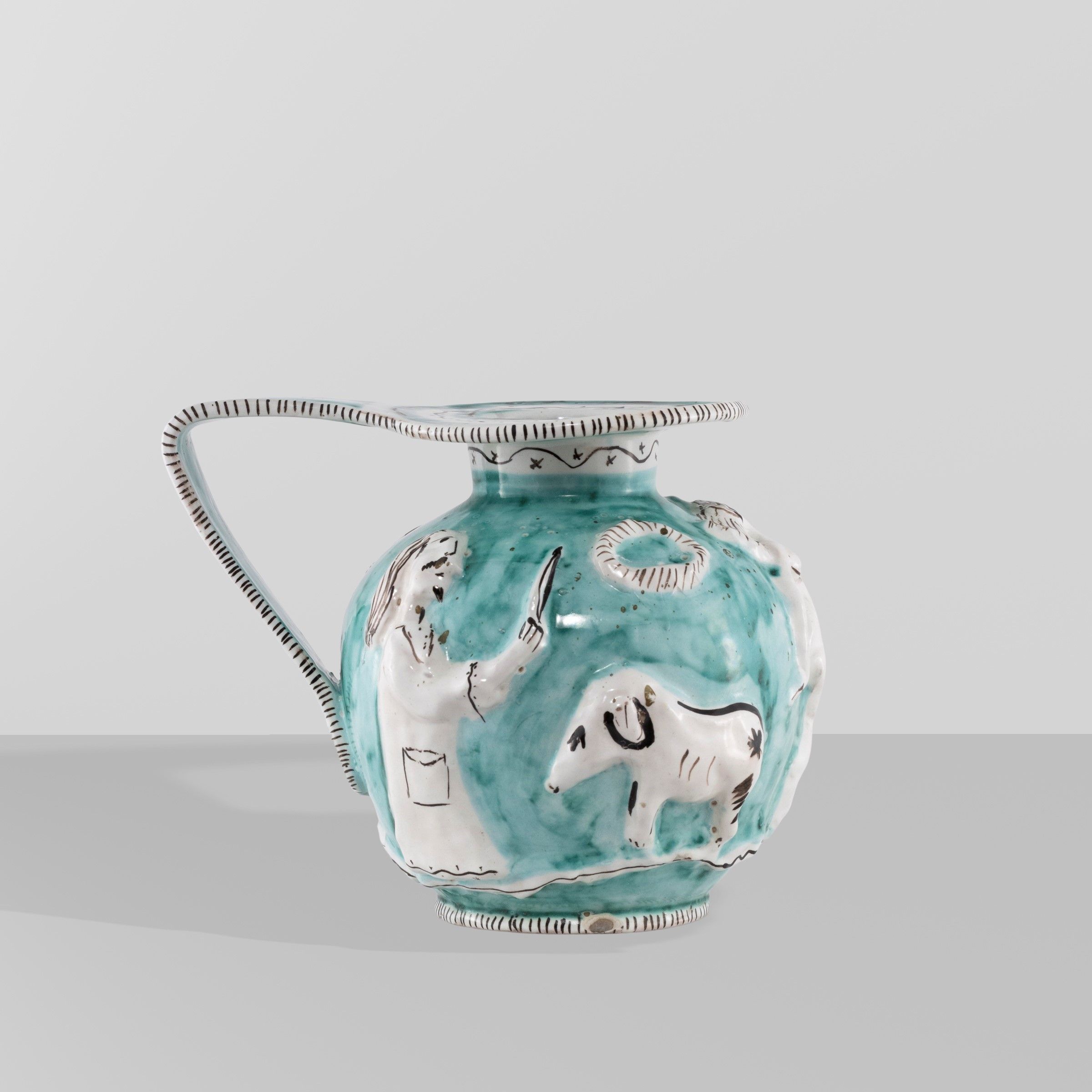 Italia, anni 60 grande brocca in ceramica policroma, marchio della produzione, lievi difetti