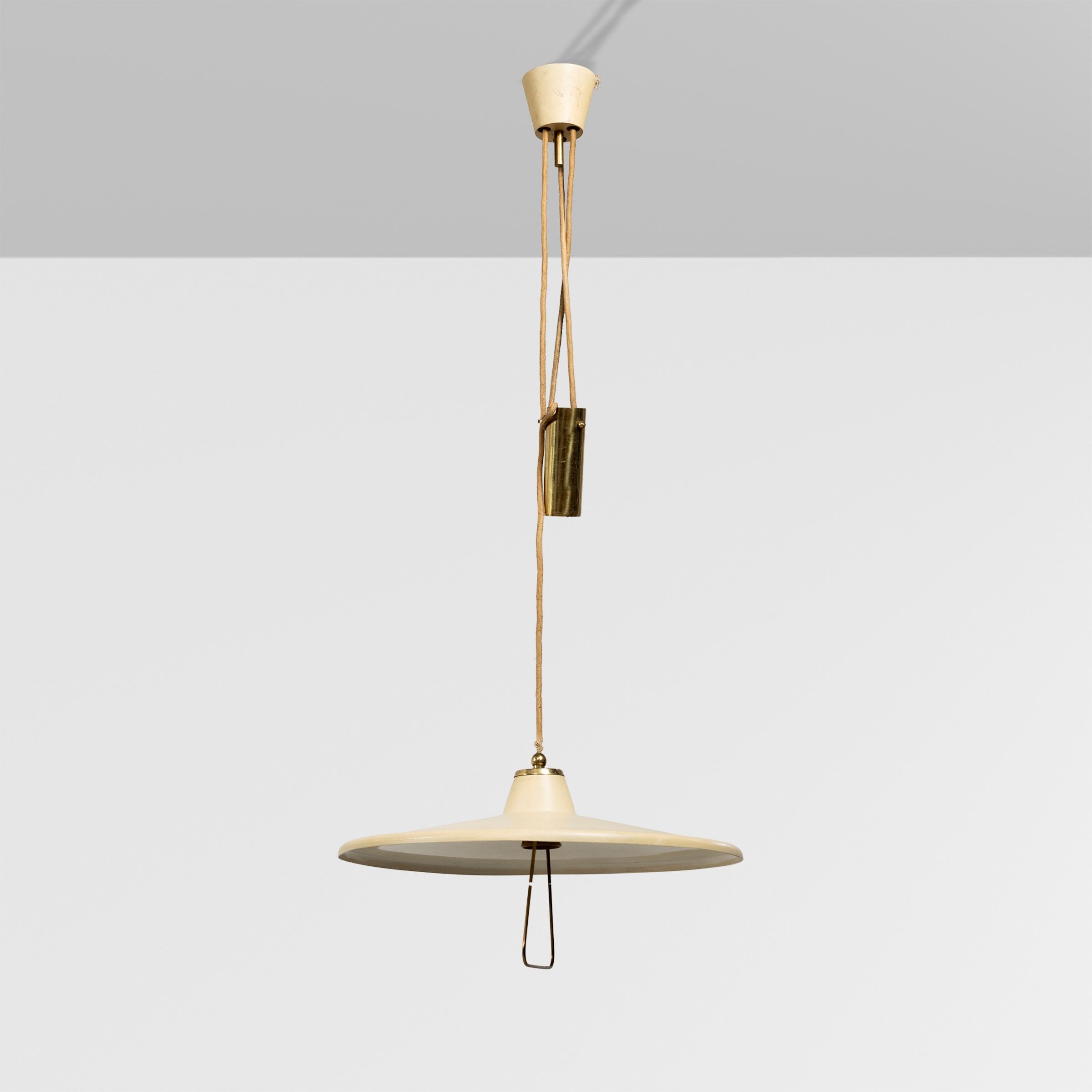 Italia, anni 60 lampada a sospensione in metallo laccato ed ottone, usure