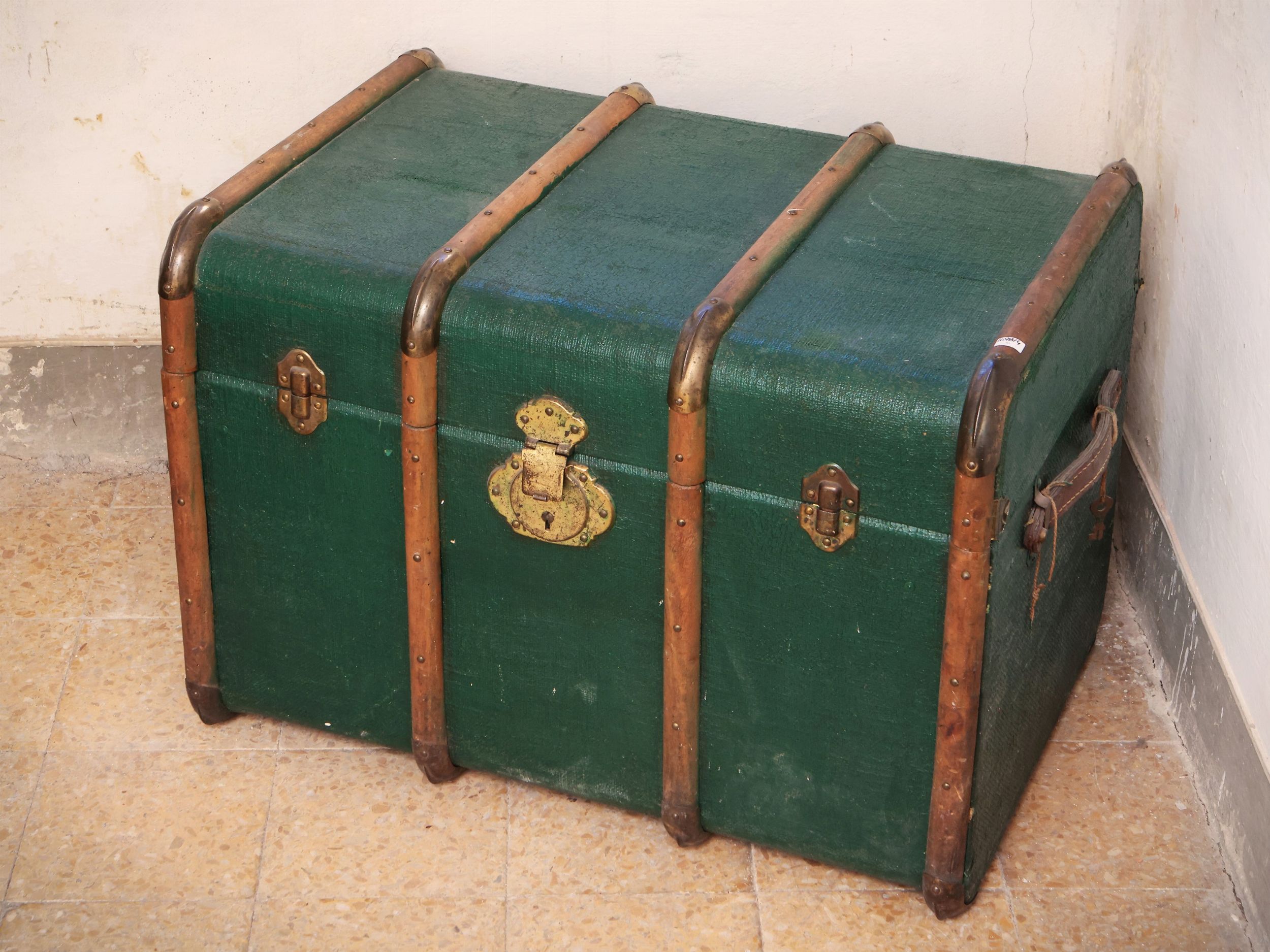 inizio del XX secolo realizzato nei toni del verde, montanti in legno con dettagli in ottone, lievi difetti