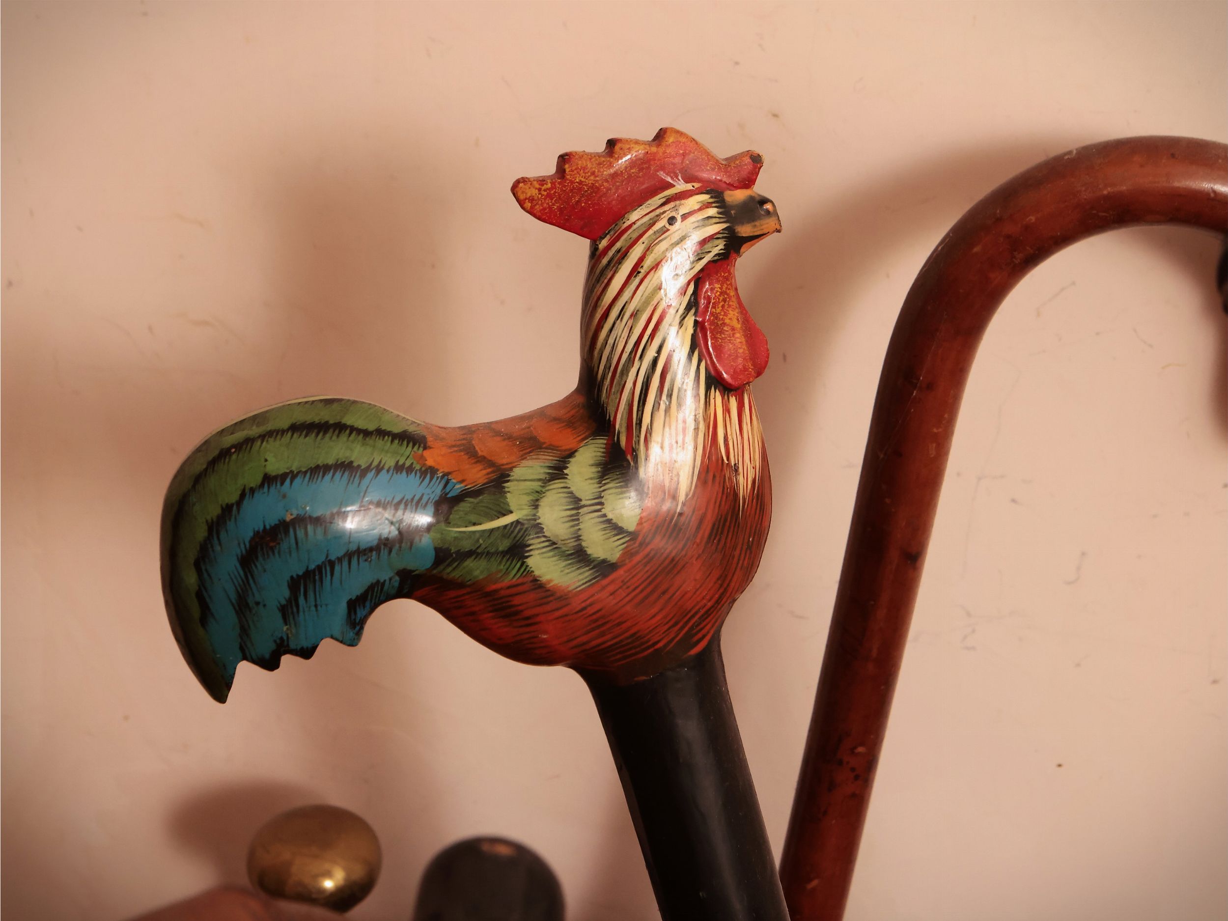 XIX/XX secolo di varia foggia e dimensione, uno in legno dipinto realizzato come gallo, lievi difetti (12)