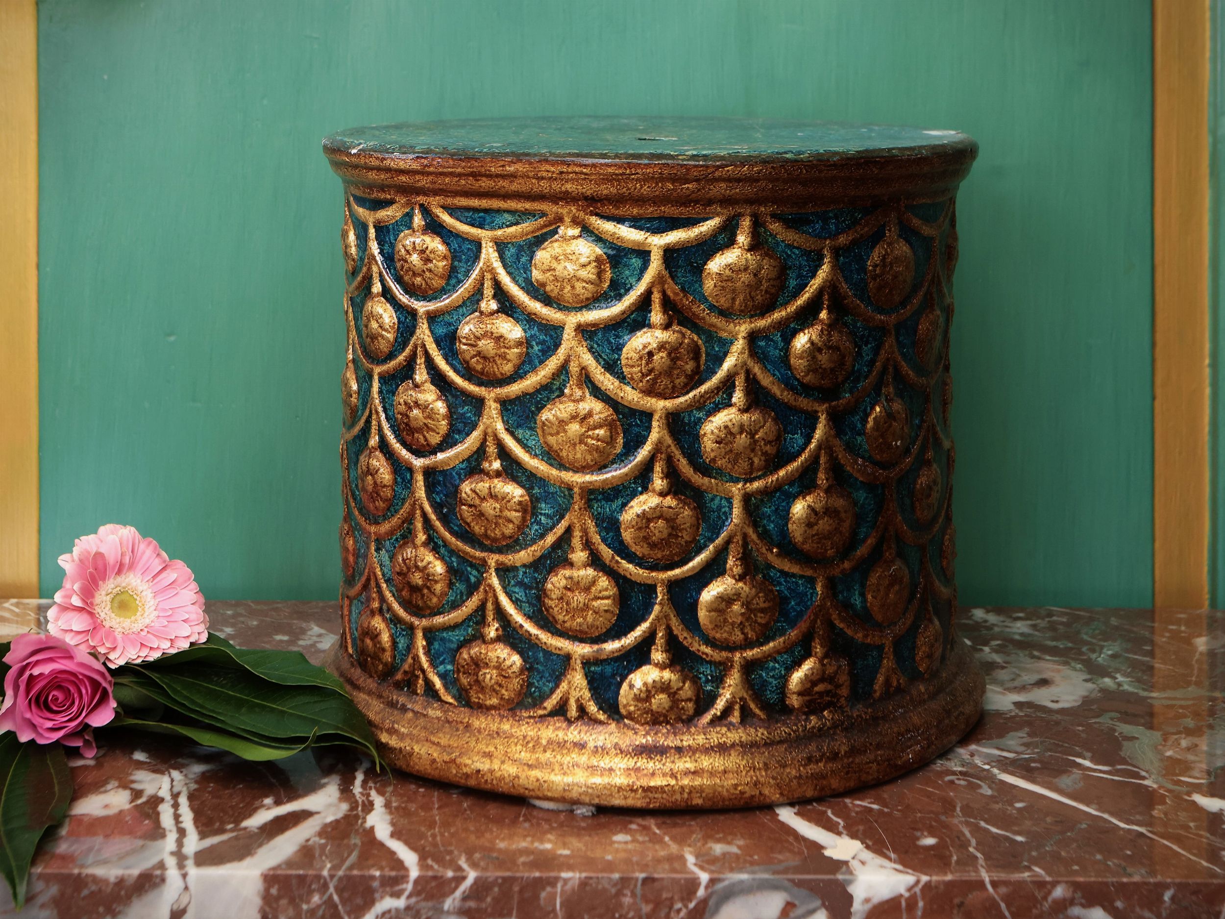 inizio del XX secolo di forma cilindrica, interamente decorata con motivo a grata nei toni dell'oro su fondo verde