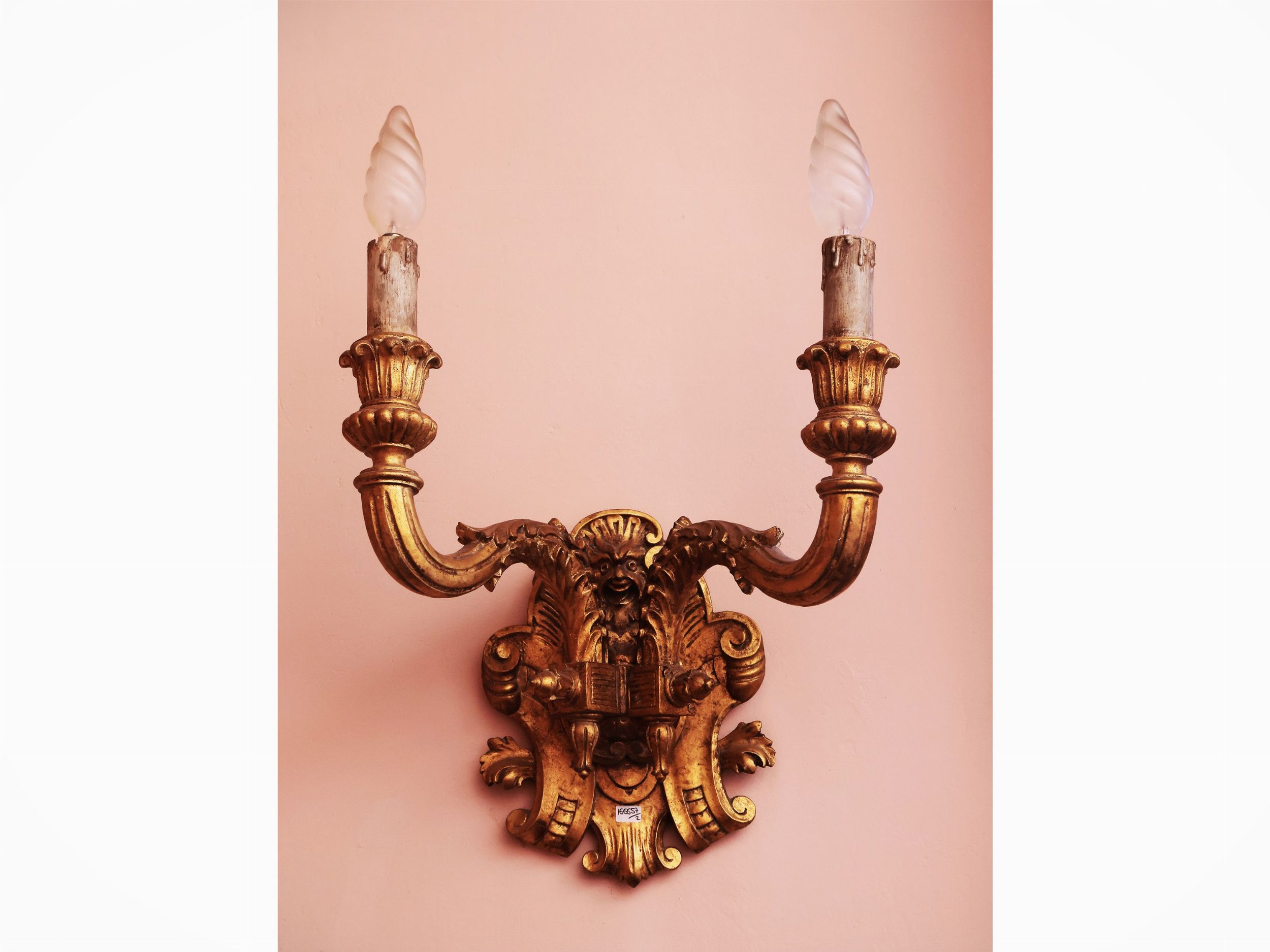 Coppia di applique in legno intagliato e dorato