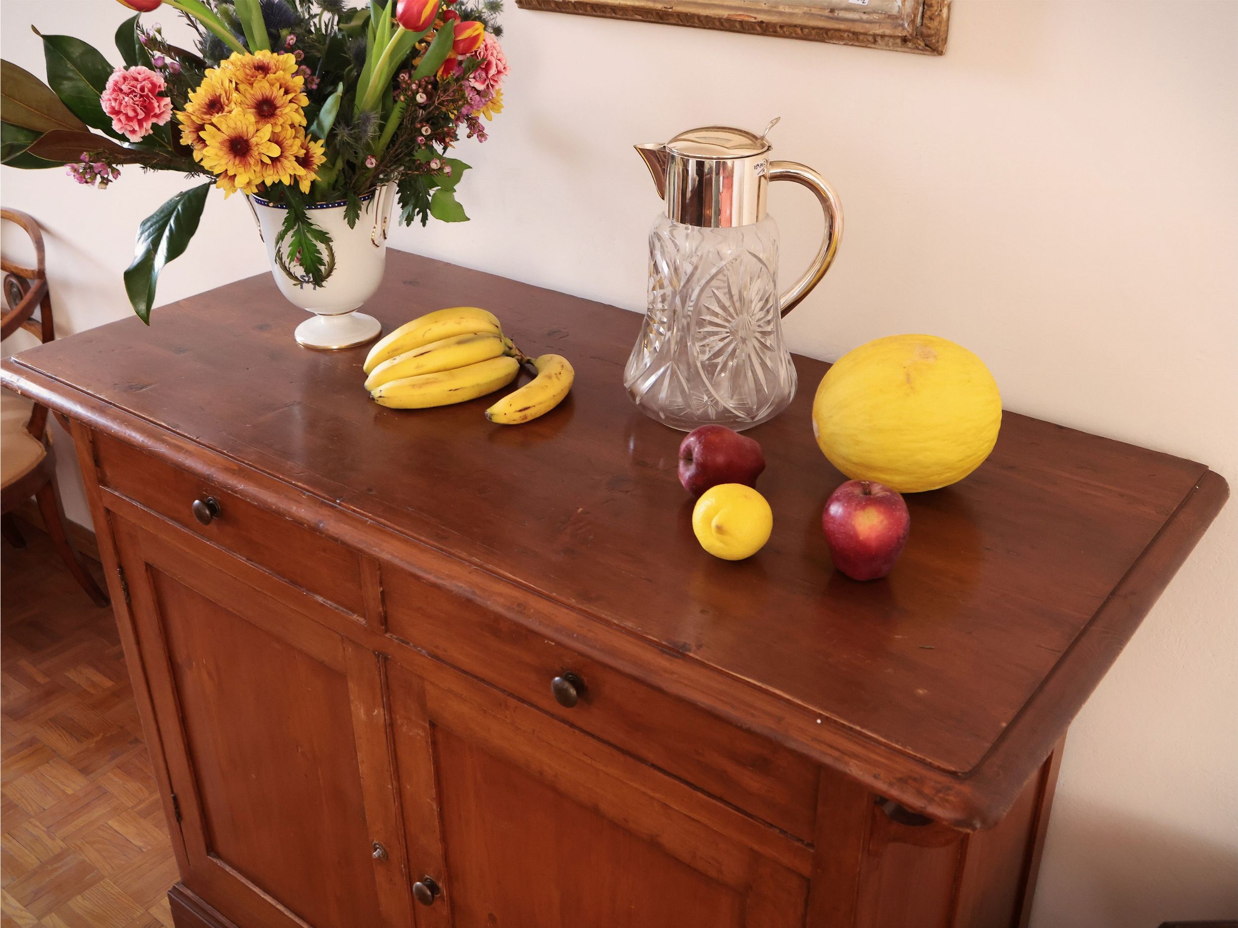 XIX/XX secolo due cassetti e due sportelli sul fronte dritto, piedi a mensola, alcuni difetti