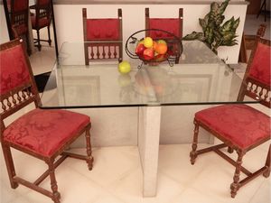 h cm 72x130x130 piano in cristallo su base a crociera in pietra