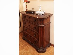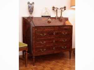 h cm 110x128x65 seconda metà del XVIII secolo sportello a calatoio a celare scarabattolo con cassettini, vani [..]