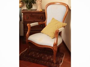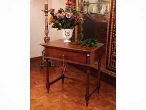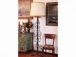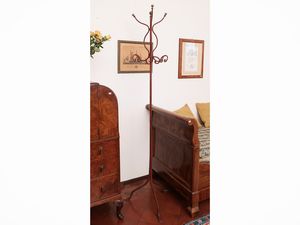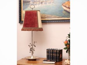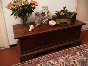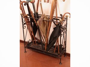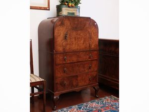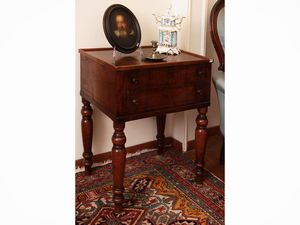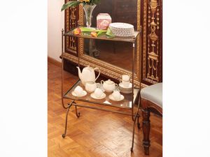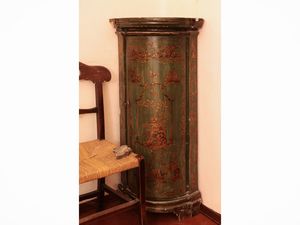 h cm 114x39x43 XIX/XX secolo dipinta a chinoiserie lumeggiate in oro, piano sagomato, uno sportello sul fronte [..]