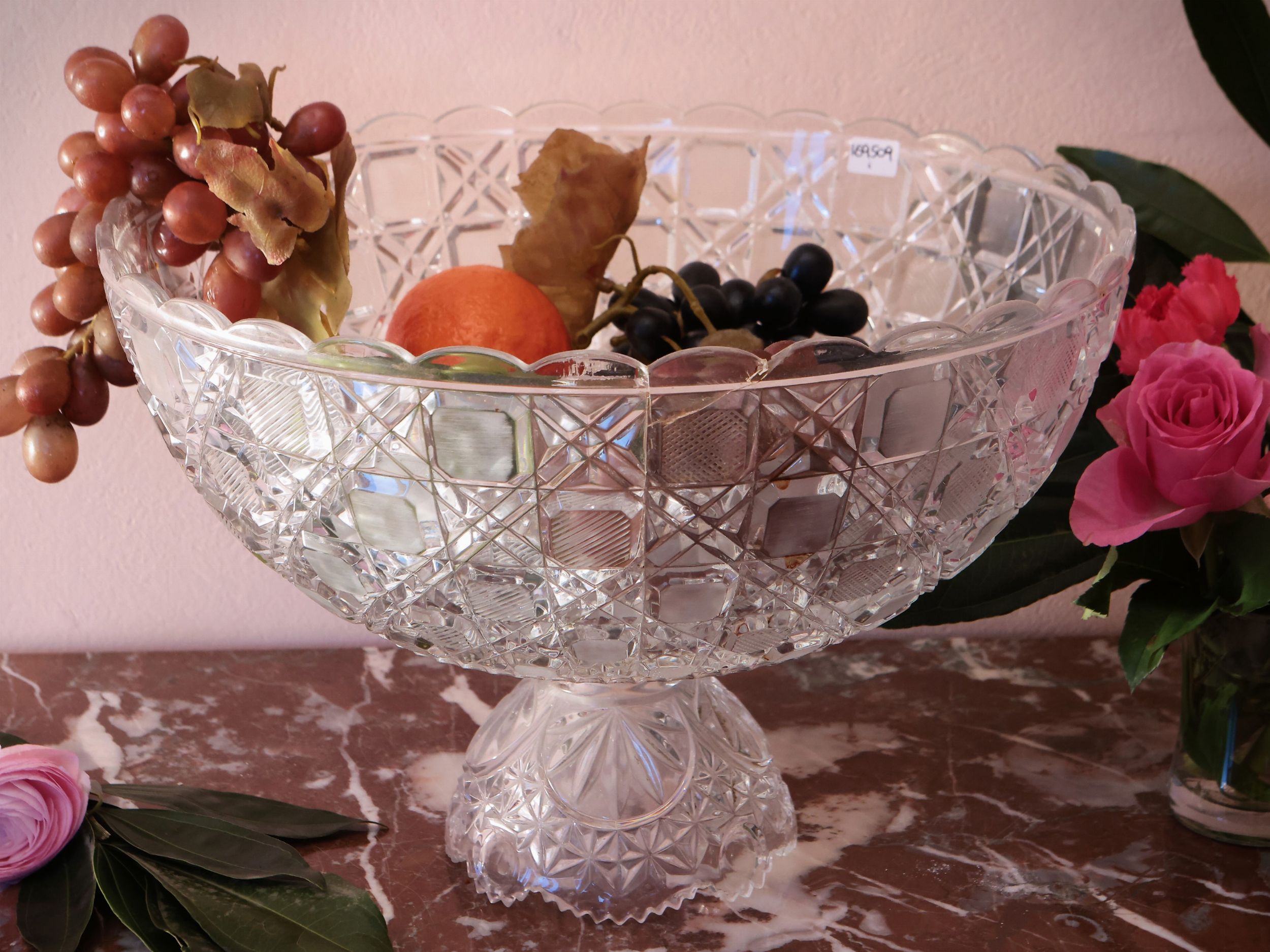 Grande alzata centrotavola in cristallo molato