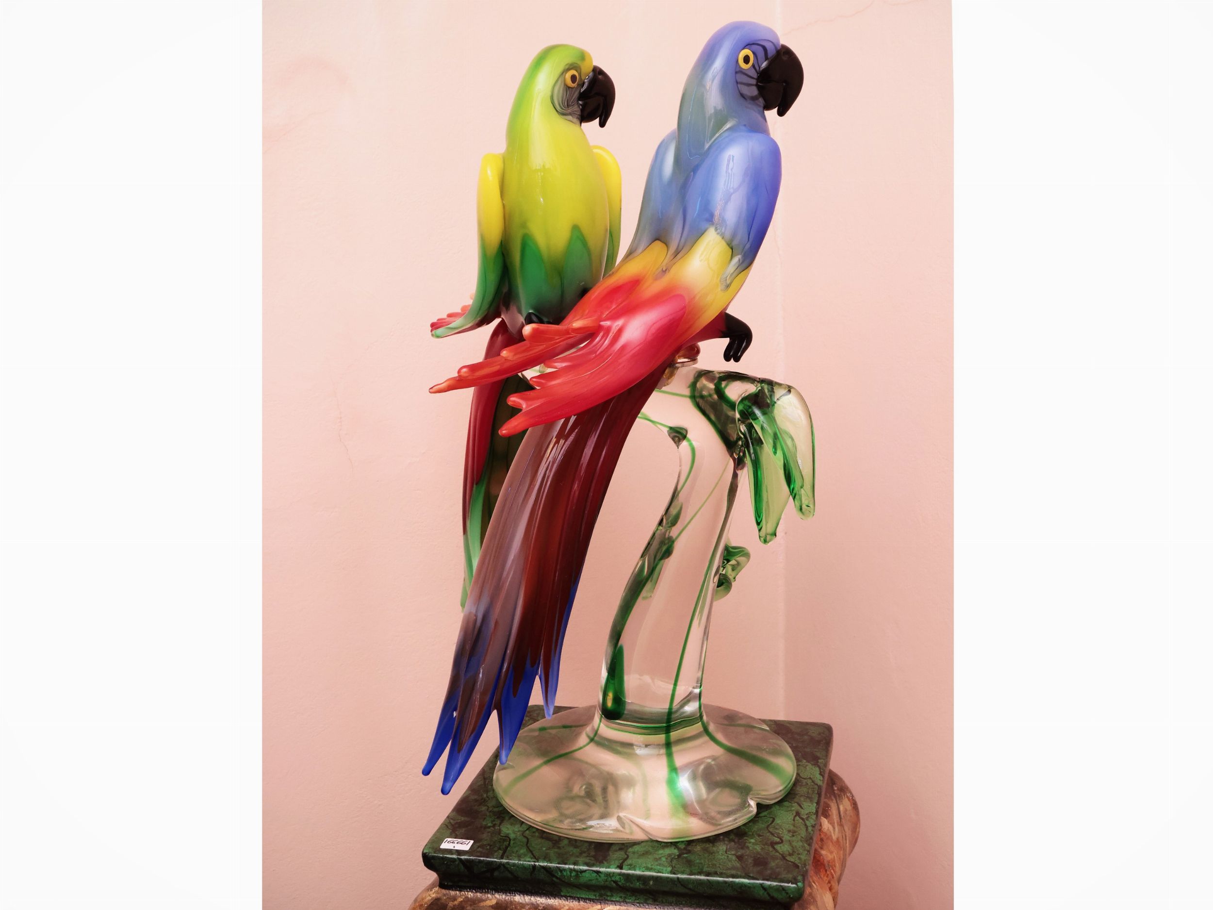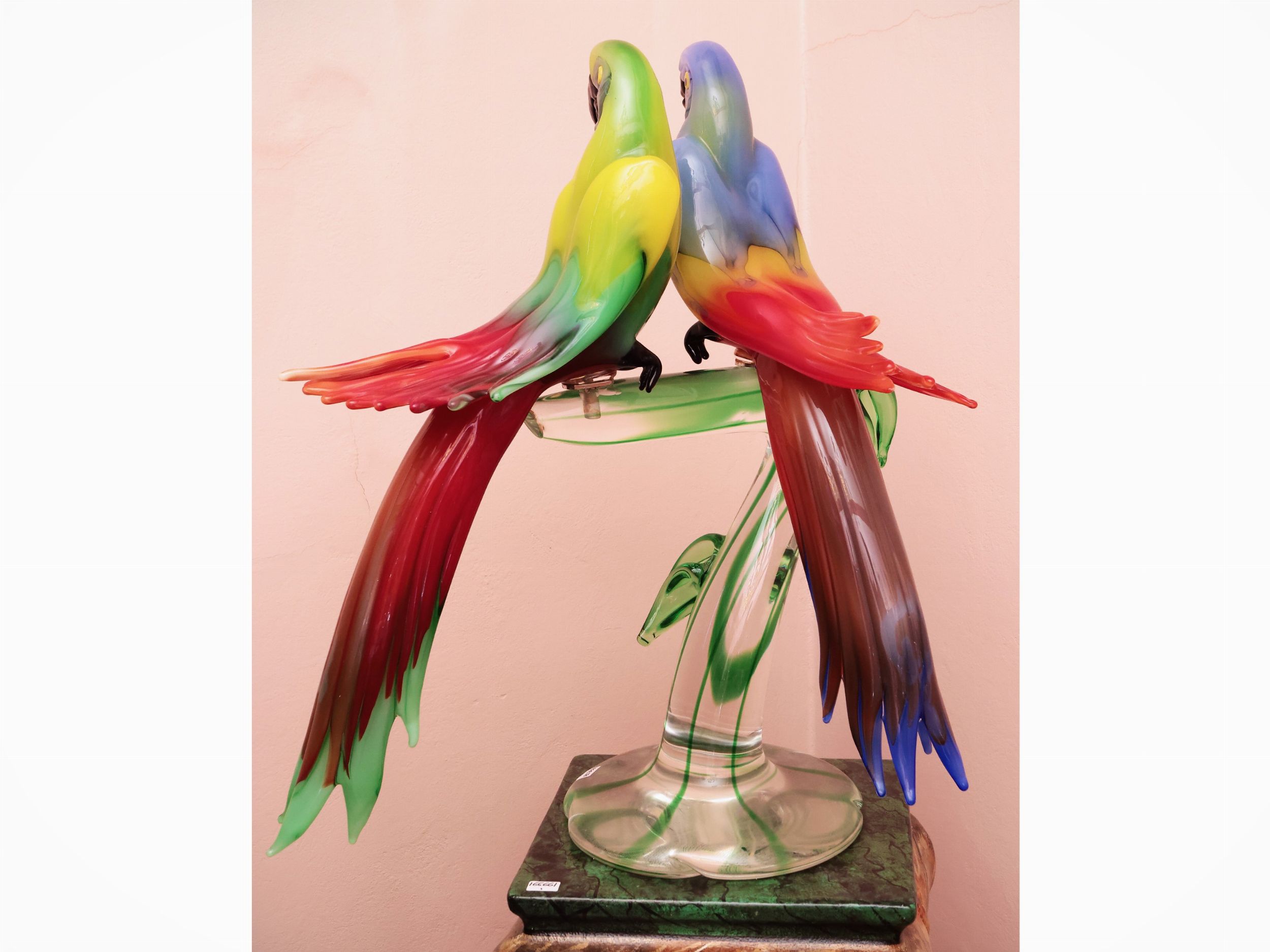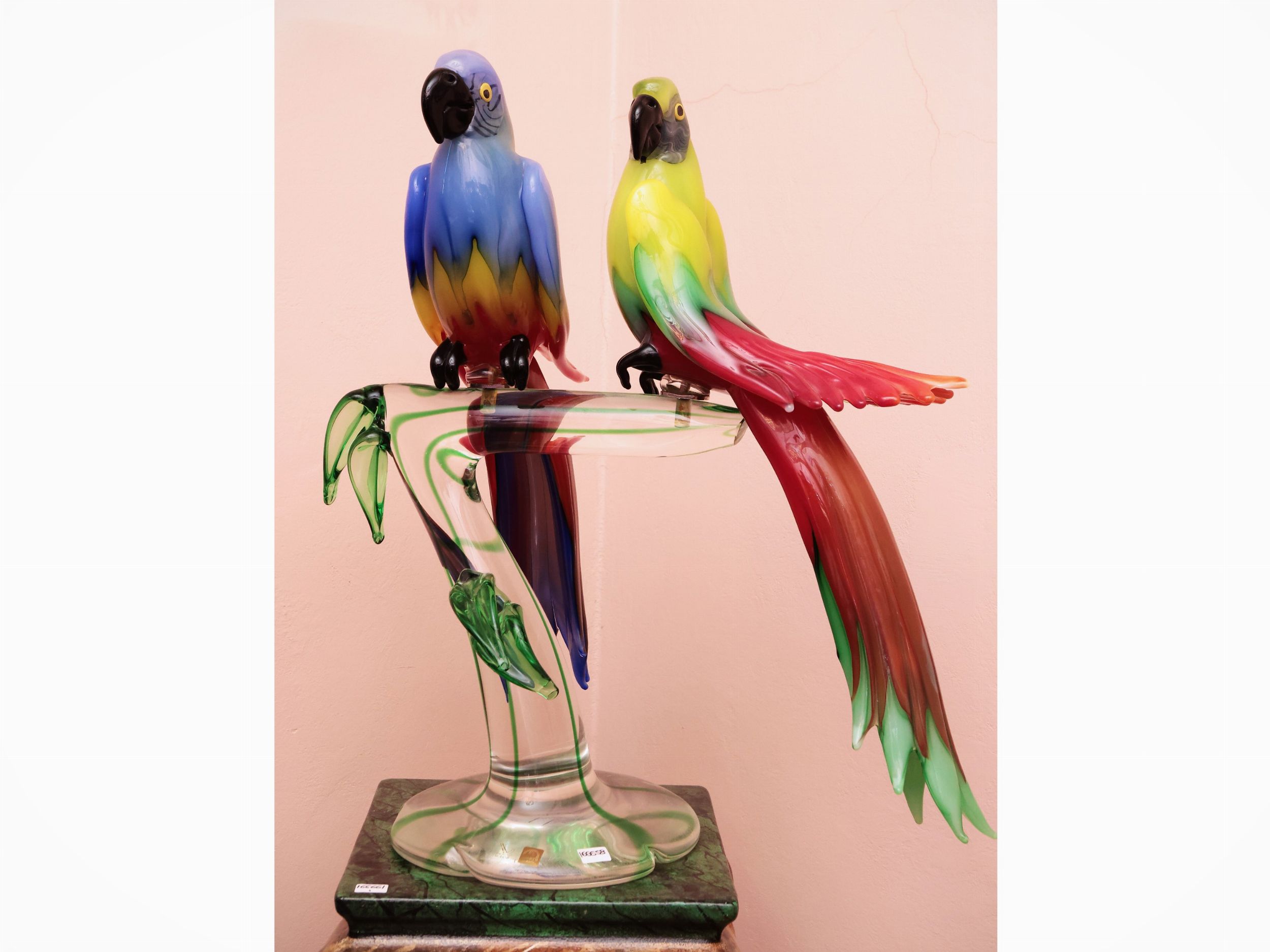 Murano, XX secolo raffigurante due pappagalli su di un ramo